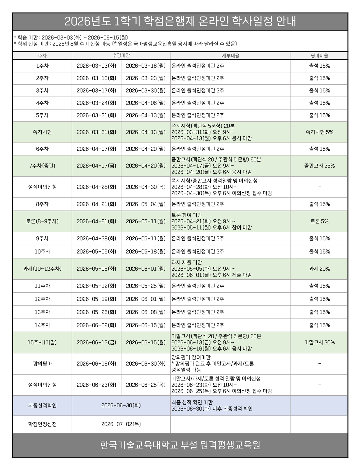 2026년 1학기 학사일정 안내